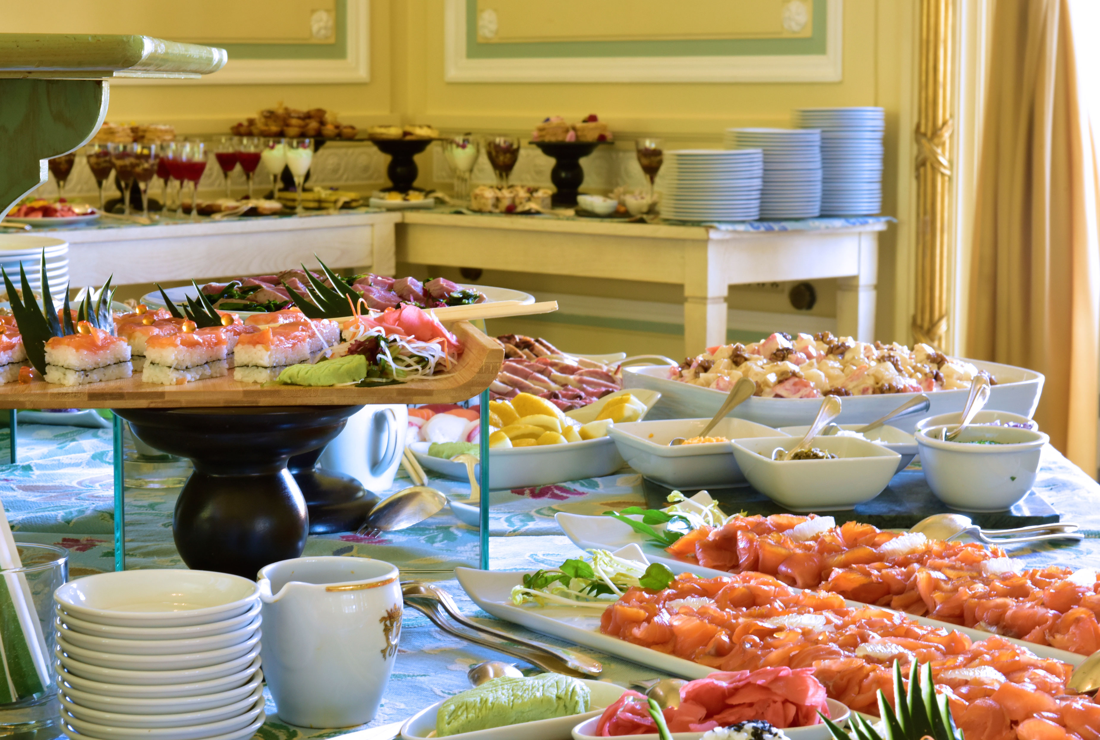 O brunch do Pestana Palace é servido aos Domingos das 12h30 às 16h00 e reúne os sabores de iguarias tradicionais, sushi e uma carving station, acompanhados pelo display do afamado pequeno-almoço do Hotel Pestana Palace.
